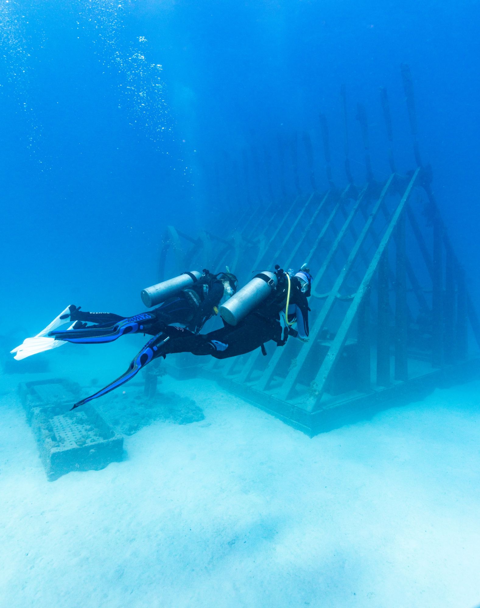 Certified divers can enjoy two dives on all our day trips to the Museum of Underwater Art. You can dive with one of our experienced dive guides or explore the MOUA with just yourself and your buddy.